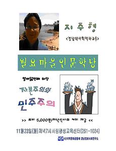 자료실/2015 활동17 월요마을인문학당_열아홉~ 스물번째 이야기 사림평생교육센터에서 월요일마다 진행되는 월요마을인문학당이 이제 막바지에 접어들었습니다~ 11월 30일(월) 아동문학평론가 박종순 선생님의 '글을 쓴다는 것' 12월 7일(월) 공명, 소통과 힐링센터 김혜란 소장님의 '말을 한다는 것'을 준비했습니다.. 많은 관심과 홍보 부탁드립니당~ 2015. 11. 26. 월요마을인문학당_열여덟번째이야기<자본주의와 민주주의> 안녕하세요~ 월요마을인문학당 열여덟번째이야기를 소개합니다~경남대학교 사회학과 지주형 교수님을 모시고 경제의 민주화에 대해 이야기 나누는 시간을 준비했습니다.11월 23일 월요일 사림평생교육센터에서 저녁 7시에 시작합니다.많은 관심과 참여 부탁드립니다~~ 2015. 11. 19. 월요마을인문학당_2015년 11월 16일(월) 7시 사림평새교육센터에서~ 사림평생교육센터에서는 월요일 밤마다 속달속달 재미나고 달달한 이야기 소리가 납니다.11월 16일(월) 저녁 7시에도 차정인 교수님의 이야기 소리로 가득할 것 같습니다.'대학과 민주주의' 주제로 여러분도 함께 하시기 바랍니다~월요마을인문학당 매주 월요일 새로운 이야기로 찾아오겠습니다~ 많은 참여 부탁드립니다~~~ 2015. 11. 12. 월요마을인문학당 열번째마당_사림평생교육센터 사림평생교육센터 월요마을인문학당 열번째마당입니다.. 9월 14일(월) 저녁 7시,, 생태해설사 강창원 선생님을 모시고 창원의 노거수에 대해 재미난 이야기를 나눕니다.... 월요마을인문학당 마지막 시간입니다. 추석 연휴 풍성하게 보내시고 10월에 새로운 이야기로 다시 찾아뵙겠습니다~ 2015. 9. 11. 월요마을인문학당_아홉번째마당 월요일마다 새로운 주제로 지역민을 만나던 월요마을인문학당이 벌써 아홉번째 시간을 맞습니다. 9월 7일(월)은 경남테크노파크 ICT진흥센터장 이창석 님을 모시고 에 대해 이야기 나눠보겠습니다. 2015. 9. 2. 월요마을인문학당_2015년 8월 24일(월)_사림평생교육센터 월요마을인문학당이 벌써 7번째 시간을 맞았습니다..창원문성대학 문헌정보과 김수경 교수님을 모시고'경남대표도서관 어떻게 만들어져야 하는가?' 라는 주제로 이야기 나눕니다.관심있으신 분들의 많은 참여부탁드립니다~ 2015. 8. 19. 이전 1 2 3 다음