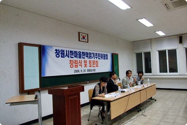 >> 한마을한책읽기 운동 배경은 창원시가 1995년부터 마을마다 마을도서관(작은도서관)을 만들기 시작하였으며, 마산․창원․진해의 통합에 의해 창원시가 운영비를 지원하는 평생학습센터(작은도서관)와 공사립 작은도서관이 61개로 전국 최고다. 2006년부터 마을의 작은도서관을 중심으로 ‘한마을한책읽기 운동’을 시작하였고, 이는 ‘한도시한책읽기운동’을 마을마다 도서관이 있는 창원의 조건에 맞게 진행한 혁신운동입니다.