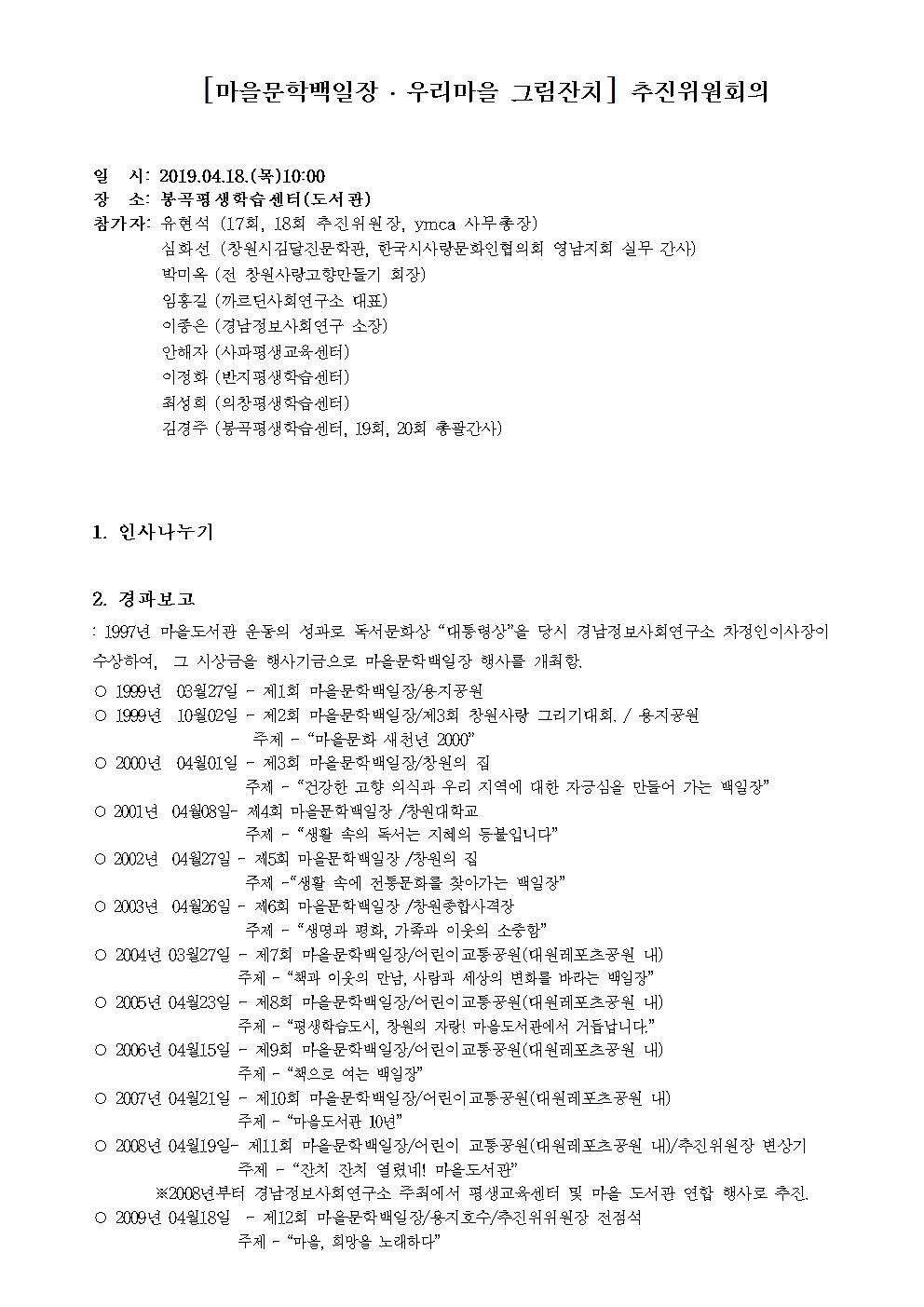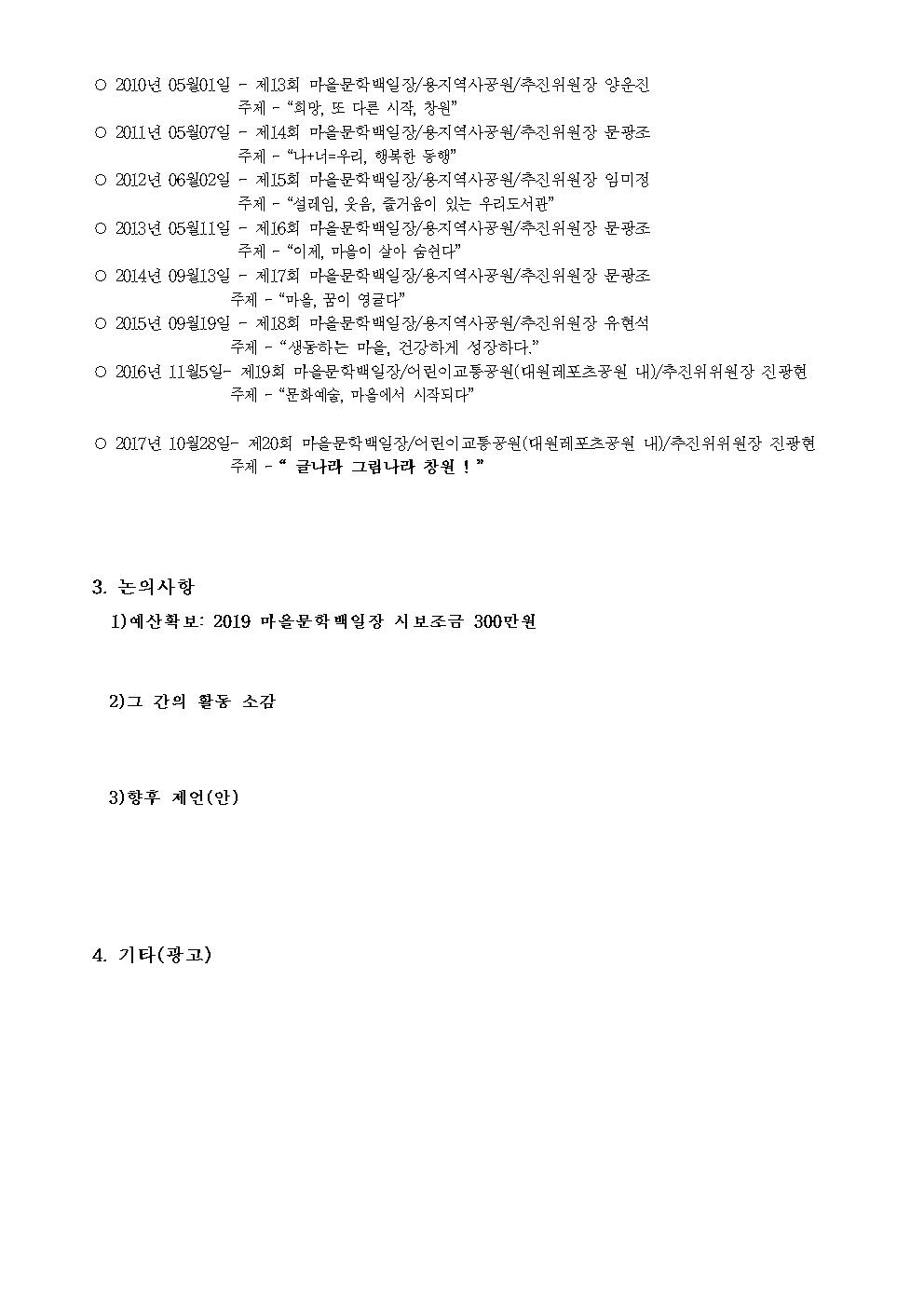 2019 마을문학백일장 ․ 우리마을 그림잔치 추진위원회의...