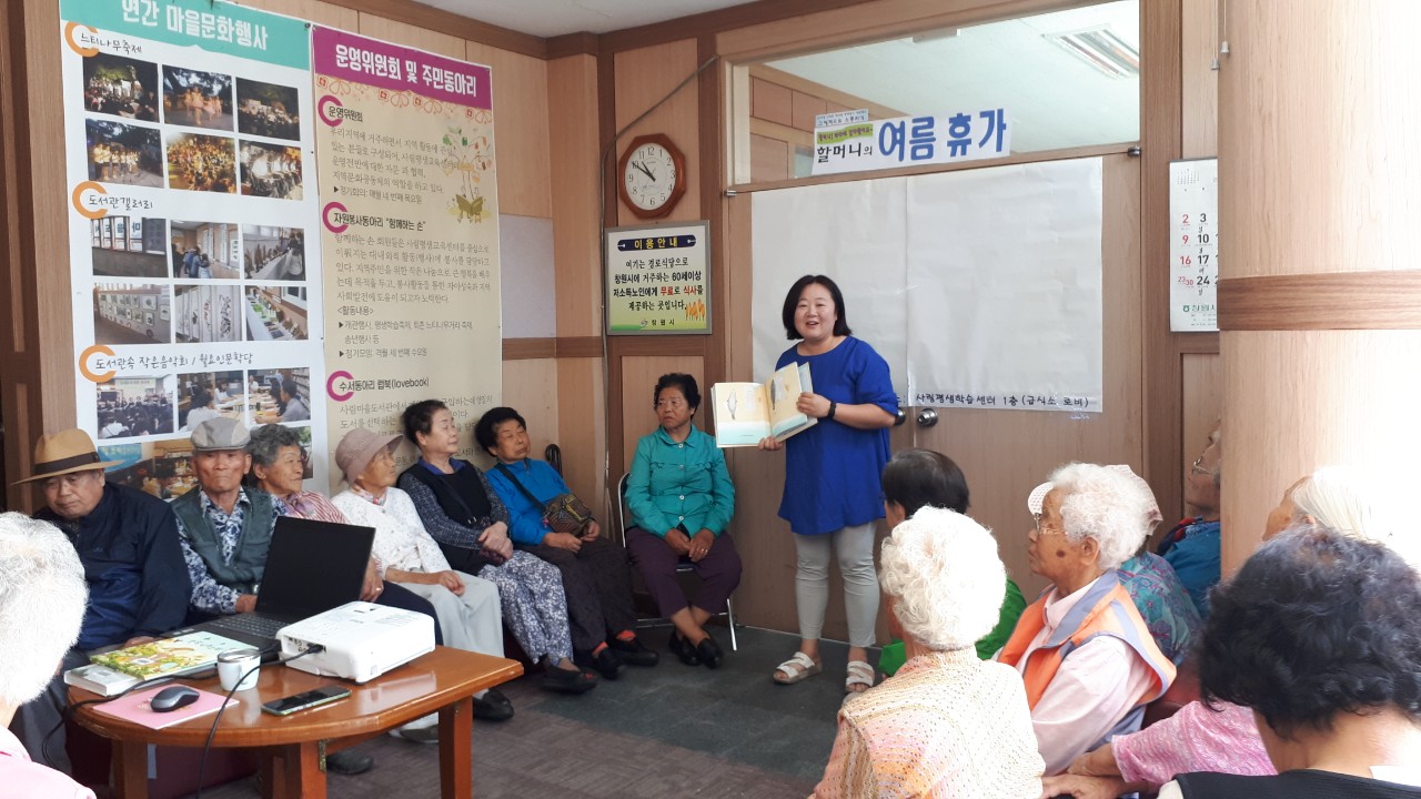 2019 사림동 한마을 한책읽기 연중활동으로 어르신들께 그림책읽어주기 행사를 진행하였습니다.