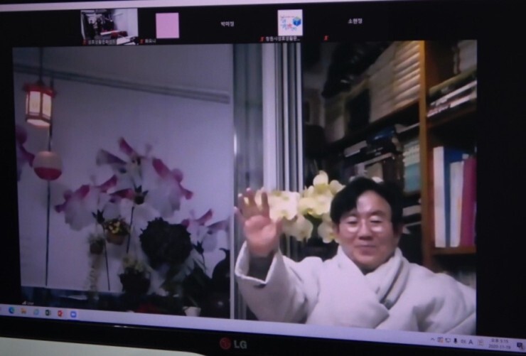 2020.11.19. 코로나 19의 방해에도 불구 하고 드뎌 화상으로 방학기 작감님과 성호 지역주민들의 만남을 소규모로 안전히 진행하였습니다.