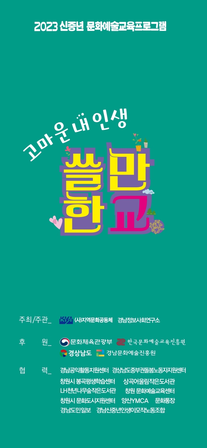 2023 신중년문화예술교육프로그램 '고마운 내 인생 쓸만한교' 참여자를 모집합니다.