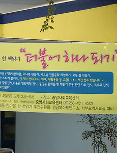 한마을한책읽기35 2012 창원 한마을한책읽기운동 활성화 실무자 워크숍 2006년 창원에서 시작된 '한마을한책읽기 운동'의 현실을 진단하고 새로운 방법에 대한 정보와 다양한 모색을 위한 워크숍이 사단법인 지역문화공동체 경남정보사회연구소 실무자 10명을 중심으로 진행되다. 2012년 1월 27일(금) 9시30분부터 시작된 '2012 창원 한마을한책읽기운동 활성화를 위한 워크숍'은 13시까지 이어지고.. 목적 및 과제로는 첫째, 2006년~ 2011년 창원시 한마을한책읽기 운동의 결산-성과와 과제에 대한 성찰 둘째, 한마을한책읽기운동 자체에 대한 성장 및 발전 가능성 모색 셋째, 한마을(한도시)한책읽기운동의 해외사례에 대한 연구와 창의적 적용가능성 모색 넷째, 한마을한책읽기운동의 국내사례에 대한 연구와 창의적 적용가능성 모색 다섯째, 한마을한책읽기운동을 종료하거나 새로운 운동으.. 2012. 1. 28. 민속 역사 특화 사림마을도서관 ~~축복과 기원을 담은 전통문화 즐기기 2011년 사림동 한마을 한책읽기는 우리 지역 마을 사람들과 함께 한 권의 책을 선정하여 년 간 다양한 활동을 통해 일회적인 행사성 독서 활동이 아니라 지속적이며, 보편적 가치의 독서활동의 기반을 진행하고 있습니다. 이번 행사는 사림동 한마을 한 책읽기 선정도서인 “나이살이” 속의 삶의 중요한 길목 ~~ 태어나서 자라고 죽을 때까지...”를 체험해봄으로써 우리조상들이 소중한 매 순간마다 서로 축복하고 격려하는 마을을 알 수 있는 소중한 경험으로 우리 마을사람들 모두가 역사와 문화를 즐기고 참여할 수 있는 한마을 한 책읽기를 함께하고자 11월13일 (일) 창원의 집에서 출생, 혼례, 상례를 체험하는 준비를 문화두레 어처구니와 함께하였습니다 2011. 11. 17. 2011년 한마을 한 책읽기 -우리동네(사림동) 책입니다... 2011년 사림동 한마을 한책읽기 도서로 청동말굽에서 기획한 "나이살이" 라는 책이 선정되었습니다 이 책은 태어나서 자라고 죽을때가지 삶의 중요한 길목마다 치렀던 통과의례 때로는 엄숙하고 때로는 흥겨운 그 소중한 순간들 속으로!.... 잊혀지고 왜곡되거나 하찮은 것으로 여겨져 제대로 빛을 보지 못하고 사라져 가는 소중한 우리 역사와 전통문화를 알리자는 의미가 담겨져 있습니다. 어머니 뱃속에 잉태되기 전부터 땅속에 묻힐때가지 사람이라면 누구나 통과해야 하는 성장의 문, 통과의례, 건강하게 자라겠습니다 (돌), 바른 어른이 되겠습니다(성년례), 한평생 사랑하겠습니다(혼례)..... 사람이 새롭게 거듭날대마다 잔치를 열어 축하하고 격려하며 마음가짐을 새롭이 하였던 조상들의 의례를 돌아보며 성장의 기쁨을 함께 .. 2011. 4. 8. 자존감을 높여라 / 고정욱 작가를 만나다-중앙마을도서관 자존감을 높여라 / 고정욱 작가를 만나다 “여러분! 우리나라에 장애인이 몇 명 정도 되는 줄 알아요? 우리나라 인구의 10%. 500만이 장애인랍니다. ” 내가 무슨 병에 걸렸는 줄 아는 사람? 지금은 예방되어 거의 존재하지 않는 병! 소아마비랍니다.” 이 이야기를 시작으로 고정욱 작가는 중앙동에서 마이크를 잡았다. 중앙동 용지초등학교 학생들과 교사, 지역주민 130여명이 함께 한 작가와의 만남은 상쾌한 공기를 들여 마시는 느낌이라할까..... 고정욱 작가의 목소리는 함께하는 이들에게 삶의 활기를 넣어준다. 그리고 정확하다. 어릴적부터 기어 다녀서 팔씨름은 최고라고 하신다. 학생들과 한판씨름도 하셨는데 사진에 담지 못해 아쉽다. 작가 뒤로 보이는 현수막은 중앙마을도서관 방과후 교실아이들과 이용회원들이 직.. 2010. 10. 29. 작가와의 만남-고정욱 10/23(토) 10시30분/중앙평생교육센터 2010년 중앙동 한마을 한 책읽기 고정욱 작가와의 만남 중앙동 한마을 한 책읽기 선정도서“편견” 고정욱 작가와의 만남에서 편견을 주제로 많은 동화를 쓰게 된 사연과 편견을 버려야할 가장 큰 이유와 중요성에 대하여 들어 보고 좋은 책을 읽고 생활에서 실천하는 것이 우리가 살아가는 사회에 얼마나 큰 영향을 미치는지 알아볼까요? 사람! 자신이 선택할 수 있는 삶과 선택할 수 없는 삶에 대하여 생각해보고, 자신과 타인의 현재 모습 그대로를 인정할 수 있는 자리가 되었으면 합니다. 작가 소개 : 고 정 욱 어린시절 소아마비를 앓아서 1급 지체 장애인인이 되었고 휠체어를 타지 않으면 움직일 수 없다. 하지만 현재 한국장애인연맹 이사로 일하면서 장애인이 차별 받지 않는 세상을 만들기 위해 노력한다. 소설가와 아동문.. 2010. 10. 7. 중앙동 한마을한책읽기-더불어 하나되기 2010년 9월 4일 토요일 오후 2시 중앙동 한마을한책읽기 행사 "더불어 하나 되기" 행사를 열었습니다. 한마을한책읽기 선정도서 '편견'(고정욱 저 외)도서로 정하고 아이들과 어른들이 더불어 읽고, 느끼고, 생각하고, 실천해 나가는 것을 취지로 한 행사에 제출 작품 수 300 여 편! 그 중 12작품을 선정하여 실천상, 어울림상, 용기상, 한마음상을 수여하였고 체험부스 탁본, 북아트, 로봇팔 만들기 역사 체험 ,손으로 보는 미술관 체험 활동 사진 전시물 등 다양하게 꾸려 졌습니다. 전체 150 여명의 참가자 분들과 25명의 자원봉사자분들과 함께 더불어 하나되는 장